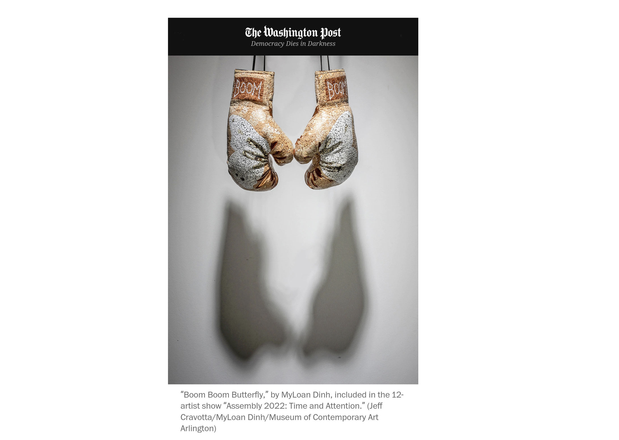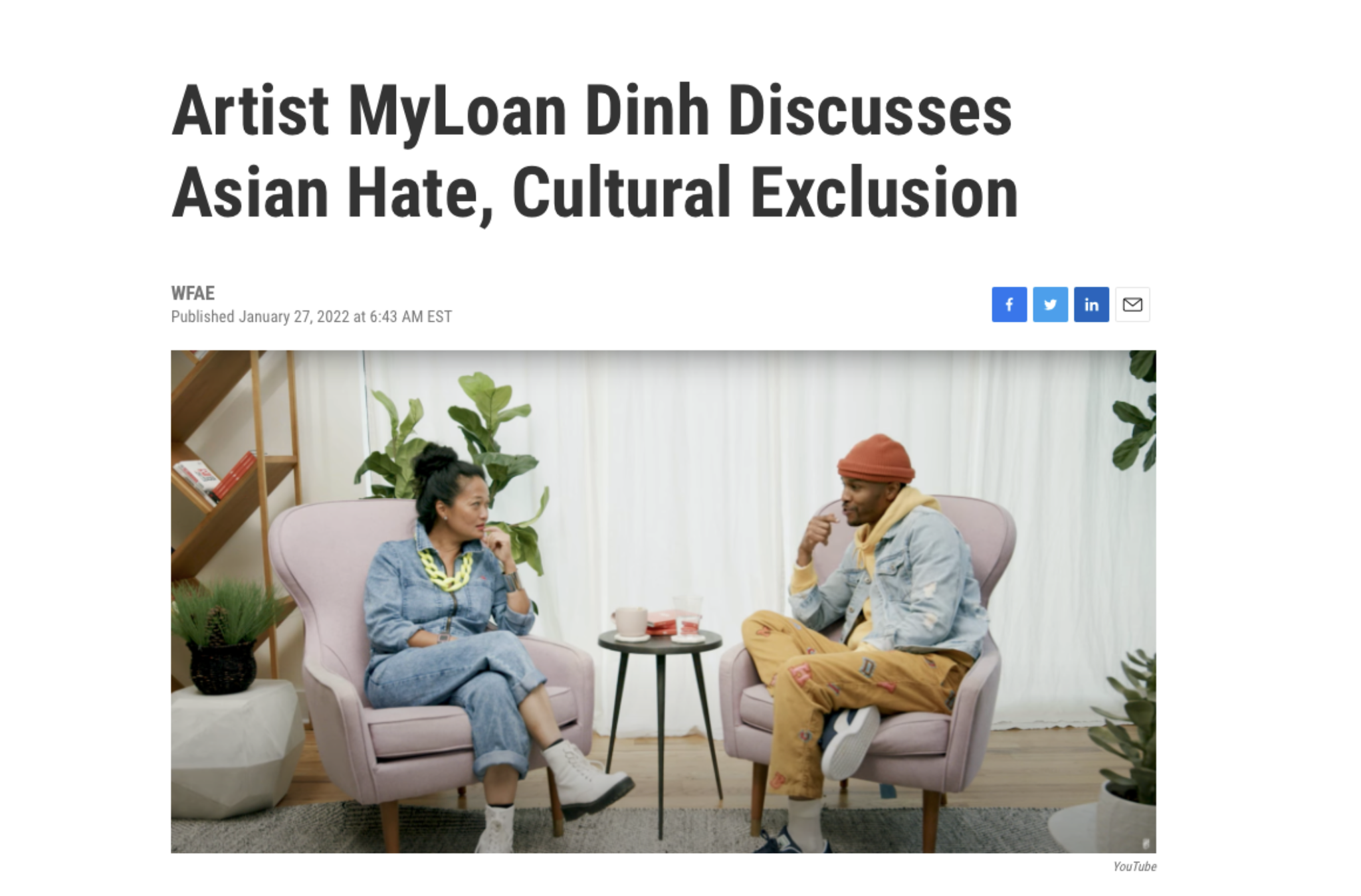 "MyLoan Dinh is a multidisciplinary artist whose work explores themes of place, identity, visibility and the human connection, while confronting issues of racism, sexism and the legacy of colonialism in contemporary culture. Sagaciously incorporating traditional craft methods into her contemporary art practice, Dinh often transforms deeply personal objects and experiences into iconic symbols and narratives of universal relevance". Ogden Museum of Southern Art, New Orleans, LA